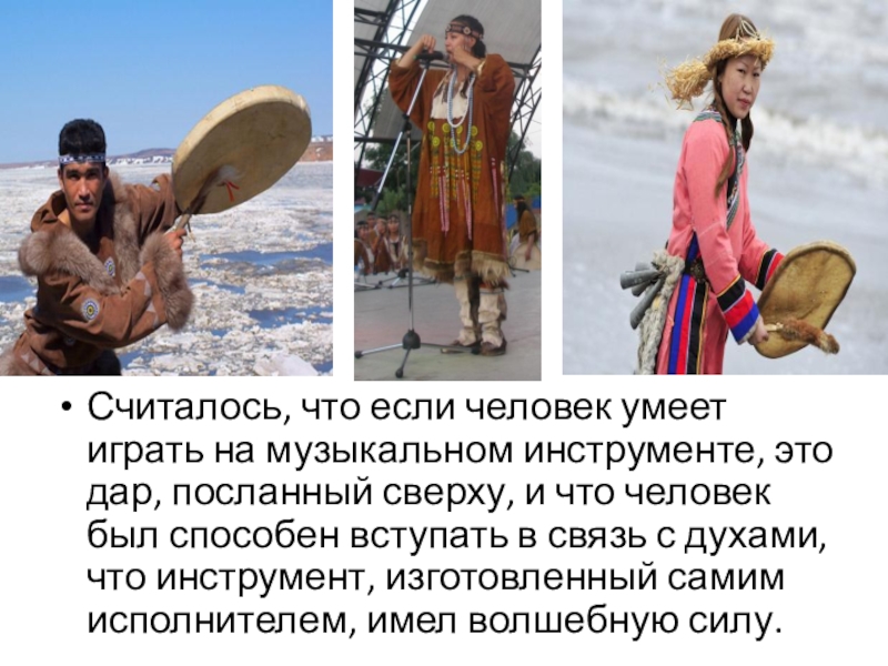 Слайд 5Считалось, что если человек умеет играть на музыкальном инструменте, это дар,