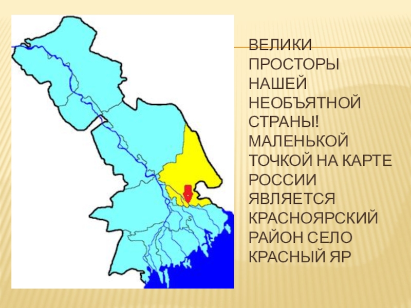 Слайд 2Велики просторы нашей необъятной страны!  Маленькой точкой на карте России является Красноярский