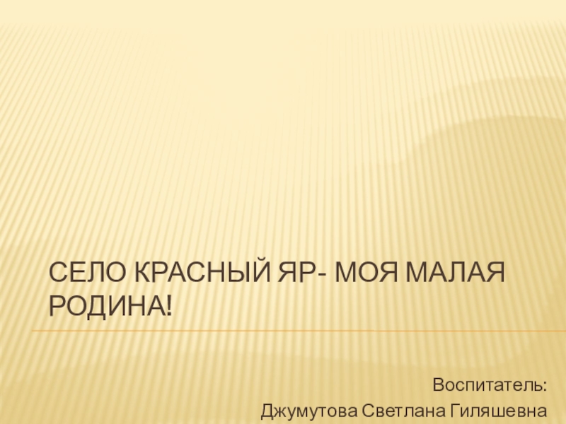Село Красный Яр- моя малая Родина!Воспитатель:Джумутова Светлана Гиляшевна