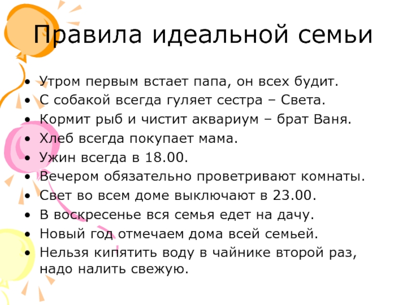 13. Каждый член семьи должен быть предметом внимания и симпатии со стороны других.