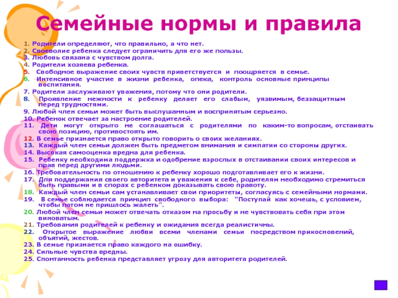18. Каждый член семьи сам устанавливает свои приоритеты, согласуясь с семейными нормами.
