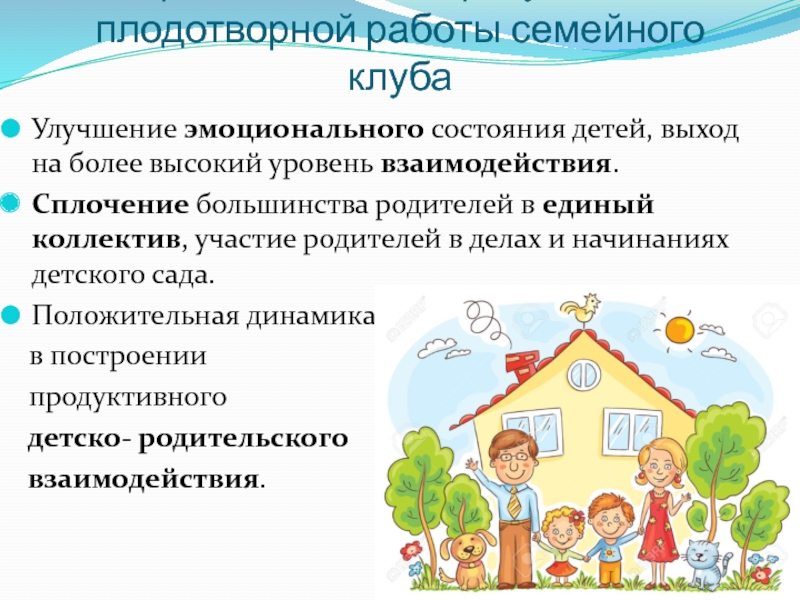 Слайд 13Предполагаемые результаты плодотворной работы семейного клуба