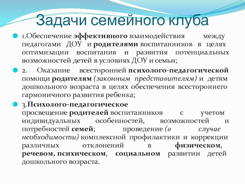 Слайд 6Задачи семейного клуба