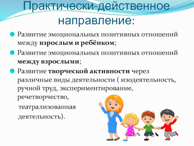 Развитие эмоциональных позитивных отношений между взрослым и ребёнком;