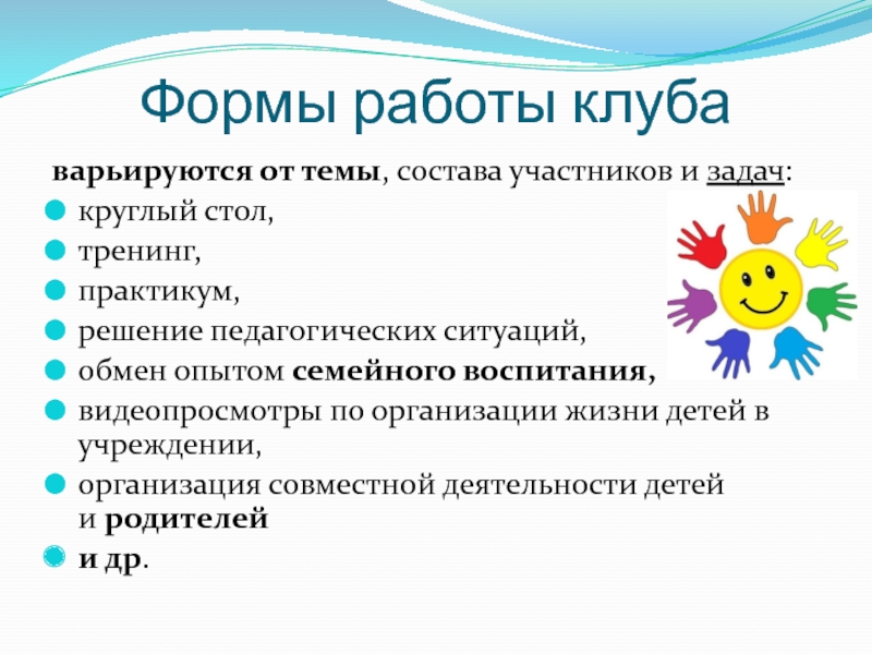 Слайд 11Формы работы клуба