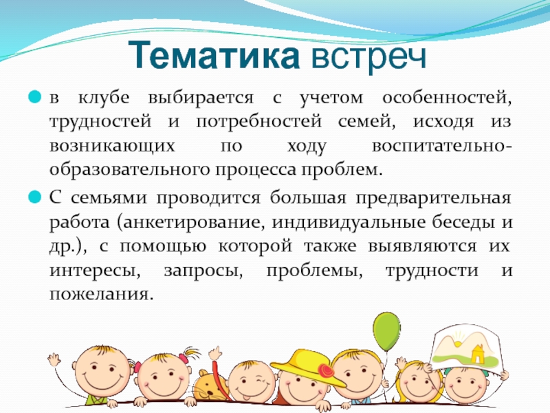 в клубе выбирается с учетом особенностей, трудностей и потребностей семей,