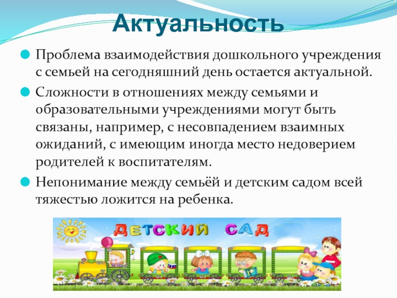 Проблема взаимодействия дошкольного учреждения с семьей на сегодняшний день остается актуальной.