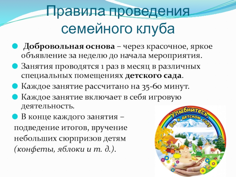 Слайд 12Правила проведения семейного клуба