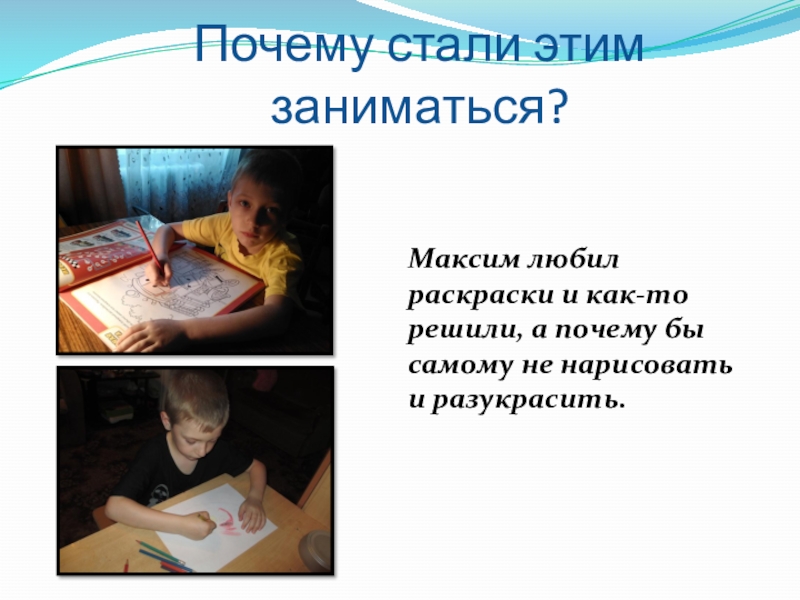 Слайд 3Максим любил раскраски и как-то решили, а почему бы самому не