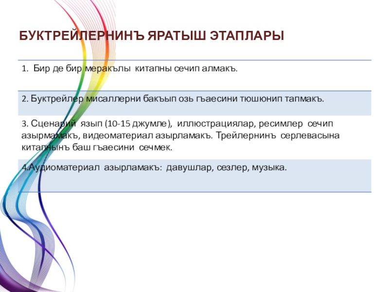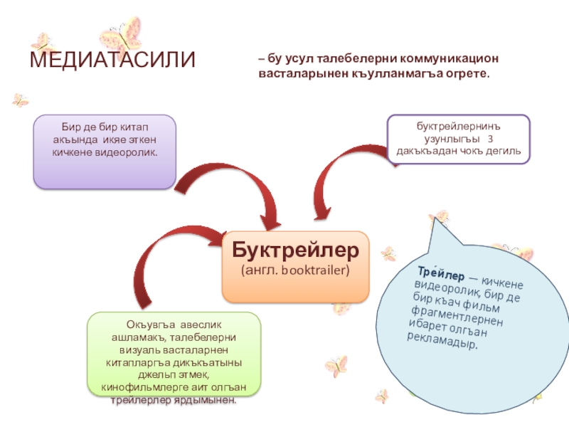 Окъувгъа авеслик ашламакъ, талебелерни визуаль васталарнен китапларгъа дикъкъатыны джельп этмек, кинофильмлерге аит олгъан трейлерлер ярдымынен.