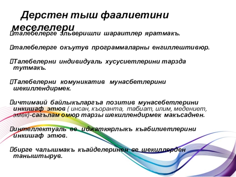 -бу процессде керекли окъутув усуллары; ишлетильсе талебелер энъ юксек макъсадларгъа иришелер.