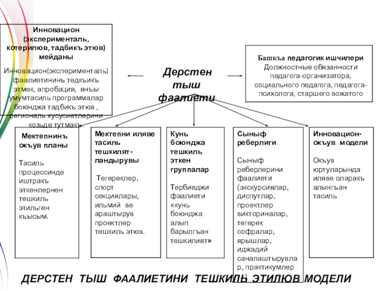 дерстен тыш фаалиетини тешкиль этилюв модели
