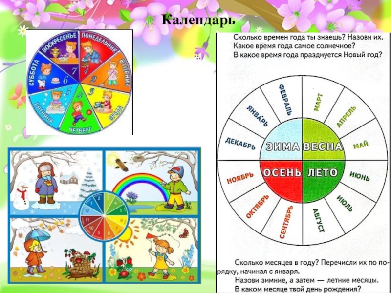 Календарь: день, неделя, месяц, год, времена года.