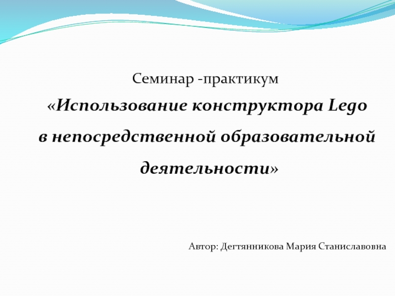 «Использование конструктора Lego в непосредственной образовательной деятельности»Семинар -практикумАвтор: Дегтянникова Мария Станиславовна