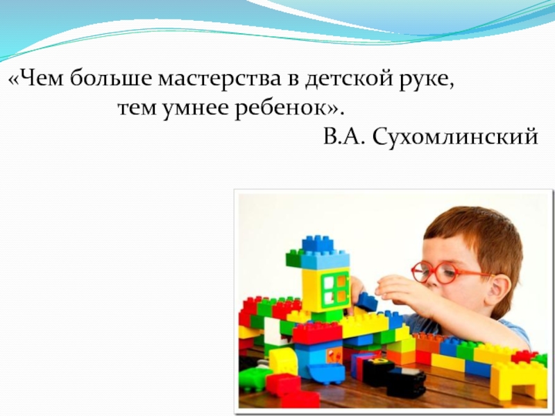 «Чем больше мастерства в детской руке, тем умнее ребенок».В.А. Сухомлинский