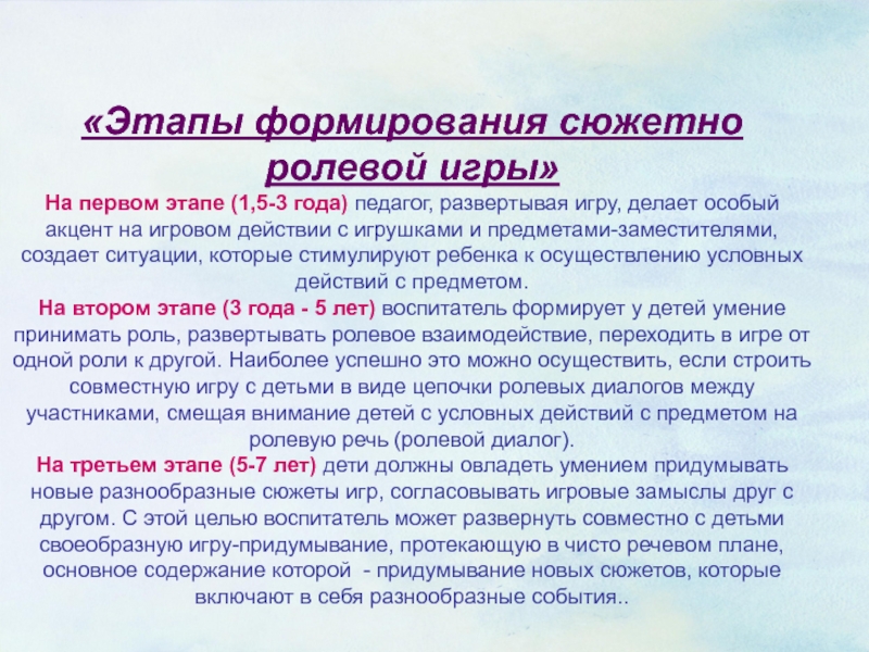 «Этапы формирования сюжетно ролевой игры»