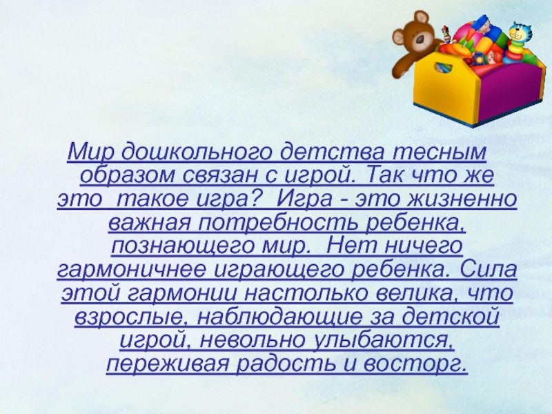 Мир дошкольного детства тесным образом связан с игрой. Так