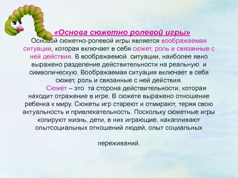 Слайд 8 «Основа сюжетно ролевой игры»