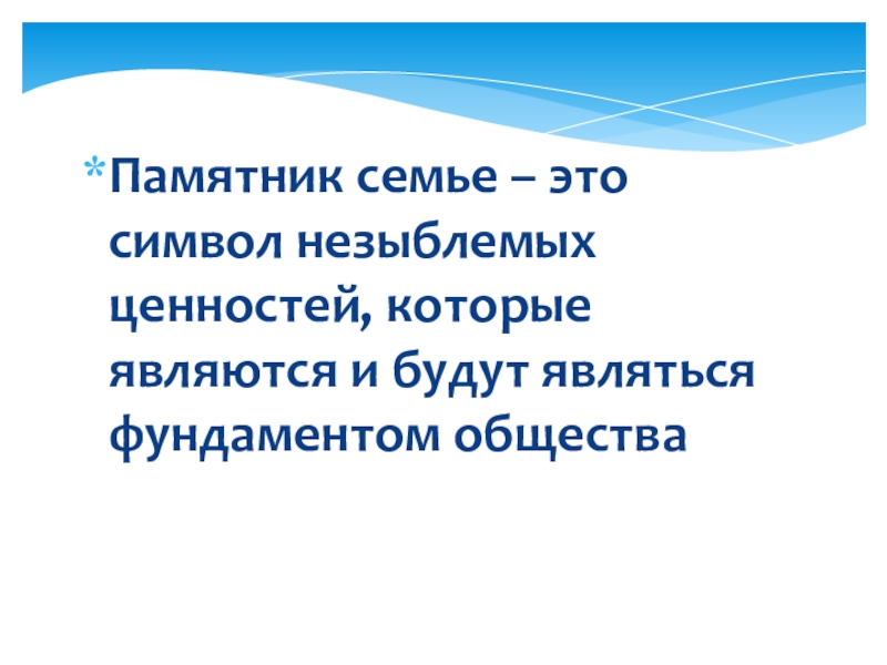 Слайд 3Памятник семье – это символ незыблемых ценностей, которые являются и будут