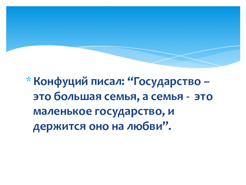 Слайд 2Конфуций писал: “Государство – это большая семья, а семья - это