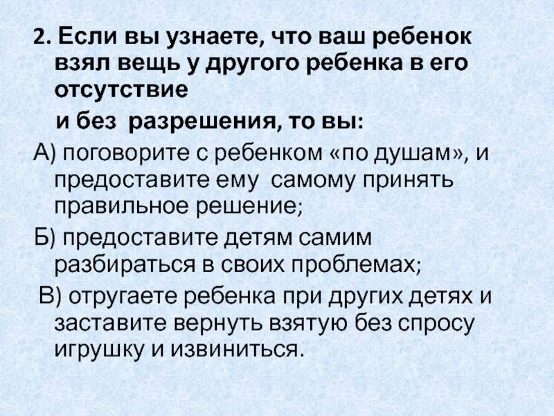 Слайд 112. Если вы узнаете, что ваш ребенок взял вещь у другого