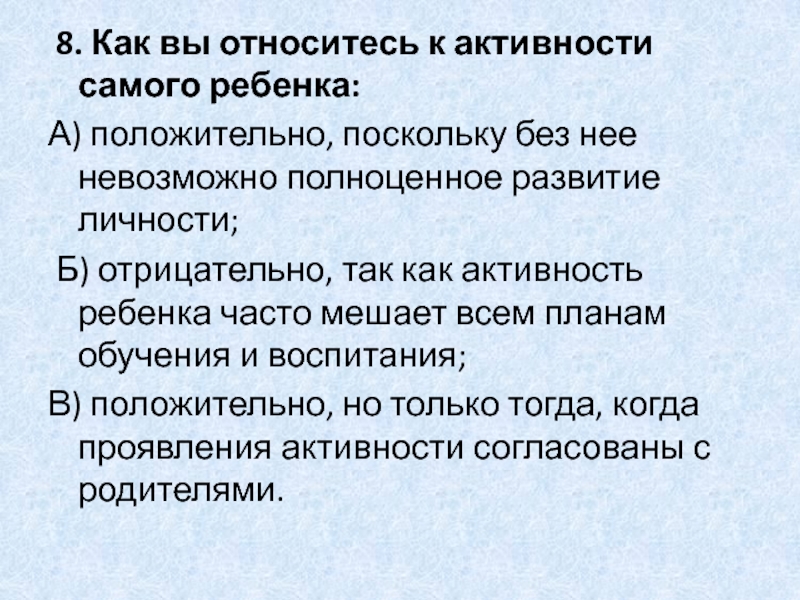 Слайд 17 8. Как вы относитесь к активности самого ребенка: