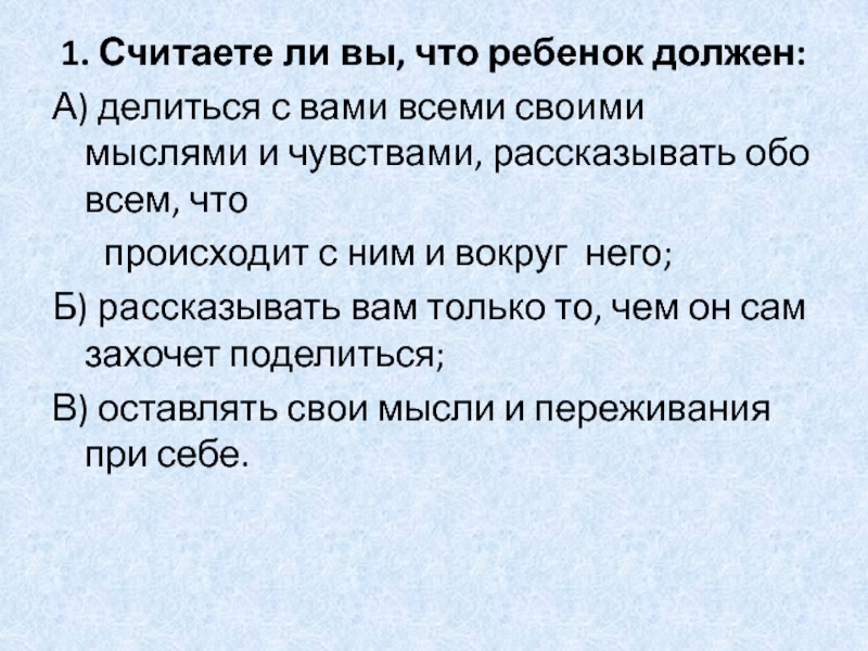 Слайд 10 1. Считаете ли вы, что ребенок должен: