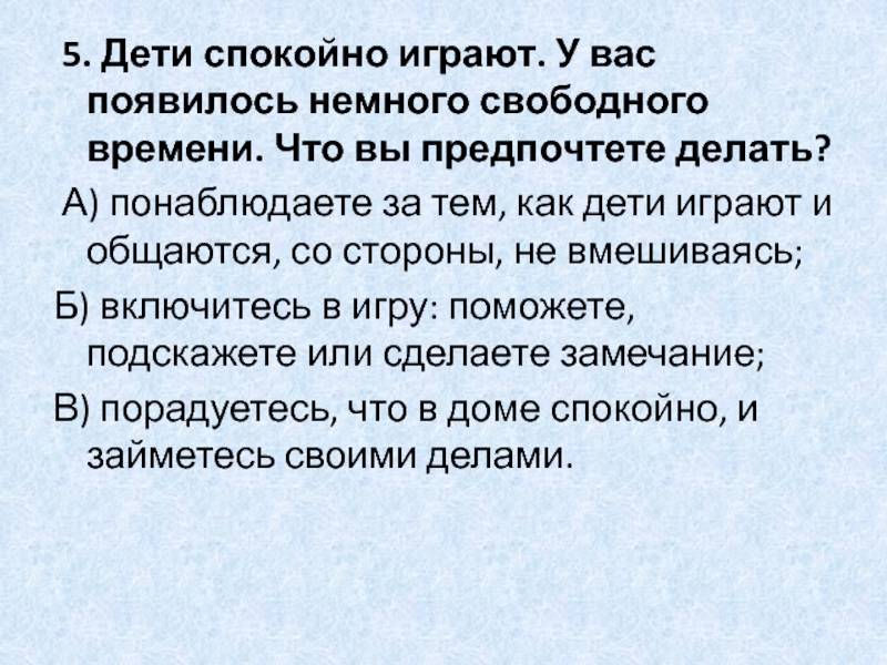 Слайд 14 5. Дети спокойно играют. У вас появилось немного свободного времени.