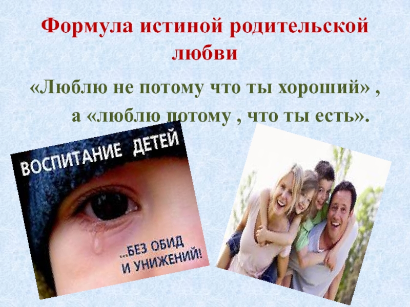 Слайд 6Формула истиной родительской любви