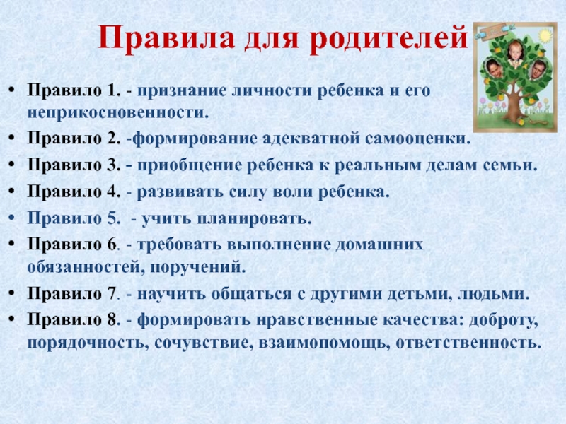 Слайд 8Правила для родителей