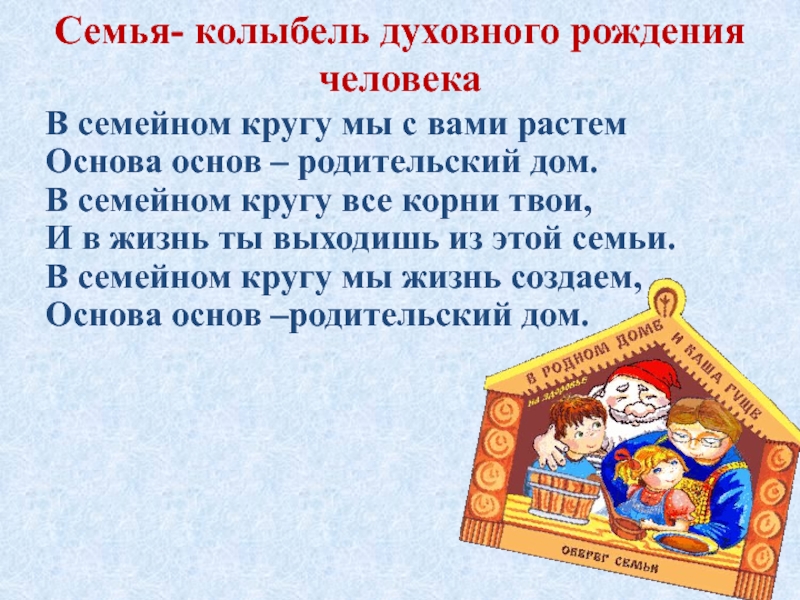 Слайд 2Семья- колыбель духовного рождения человека