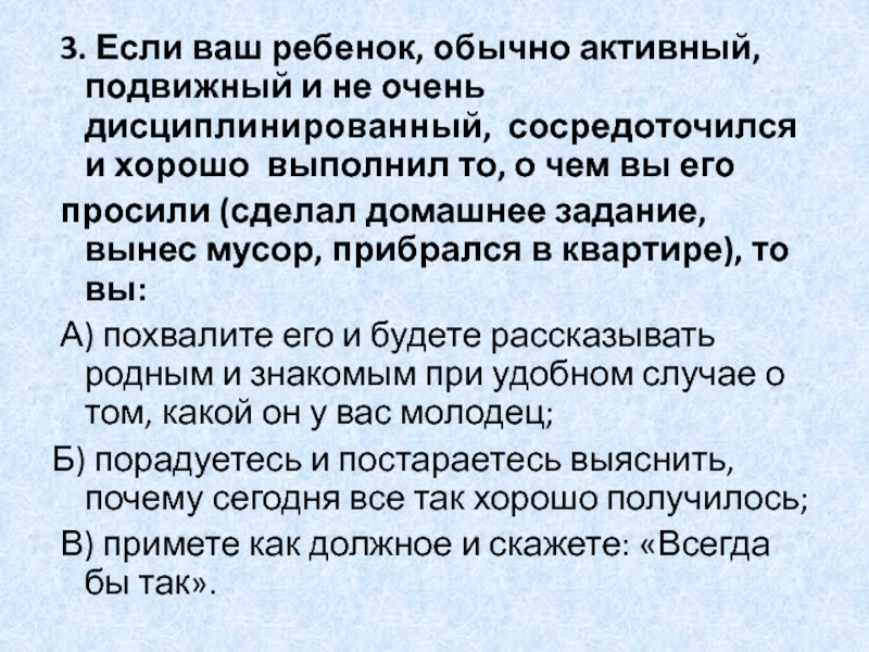 Слайд 12 3. Если ваш ребенок, обычно активный, подвижный и не очень