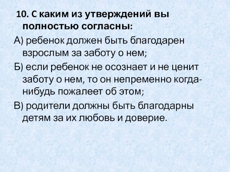 Слайд 19 10. C каким из утверждений вы полностью согласны: