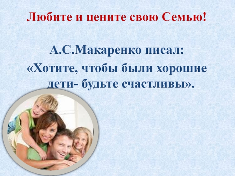 Слайд 9Любите и цените свою Семью!