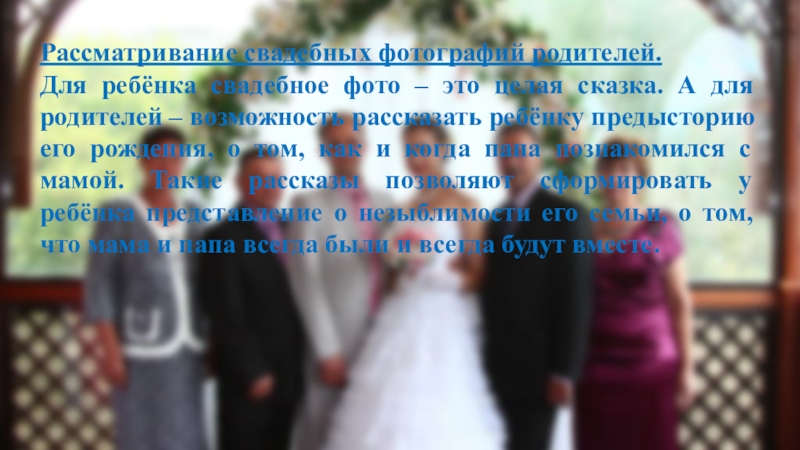 Слайд 10Рассматривание свадебных фотографий родителей.