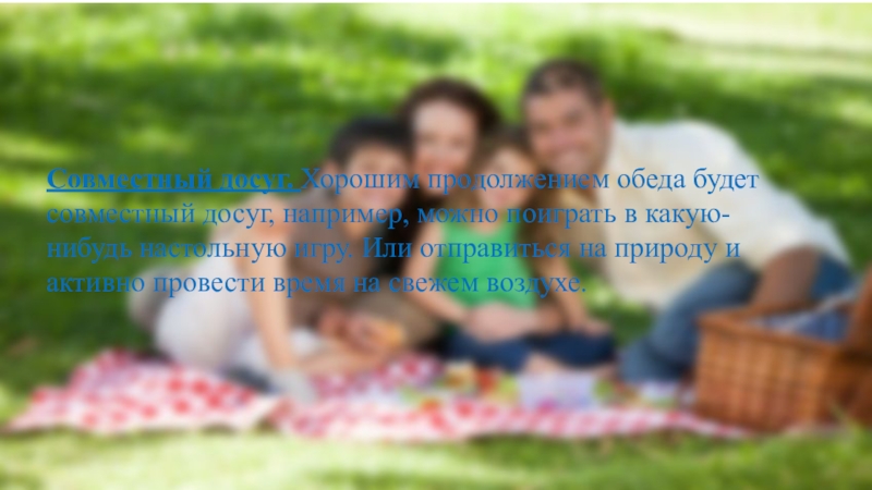 Слайд 7Совместный досуг. Хорошим продолжением обеда будет совместный досуг, например, можно поиграть