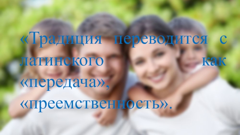 Слайд 5«Традиция переводится с латинского как «передача», «преемственность».