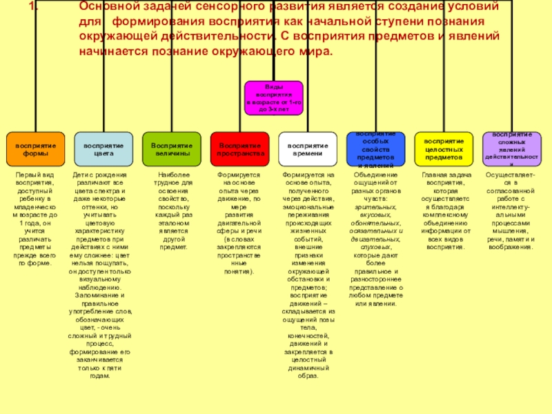 Слайд 8Основной задачей сенсорного развития является создание условий для формирования восприятия