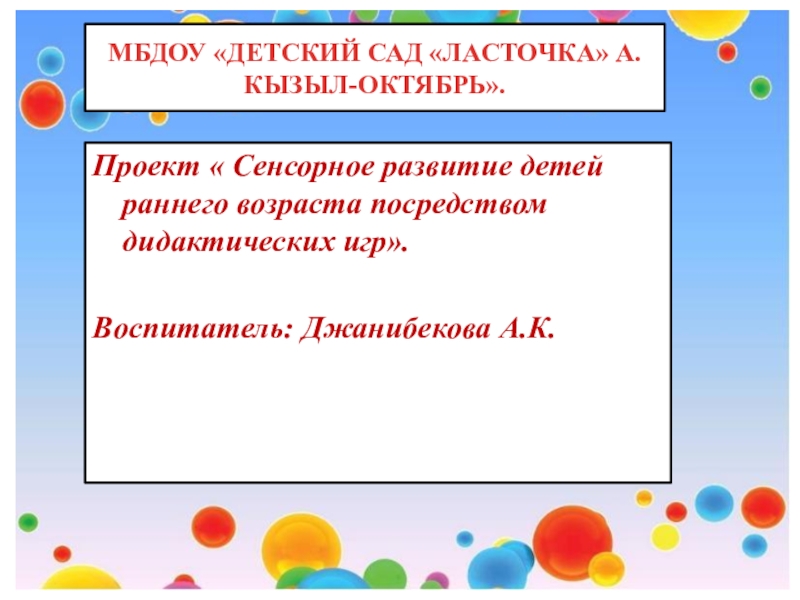 Воспитатель: Джанибекова А.К.