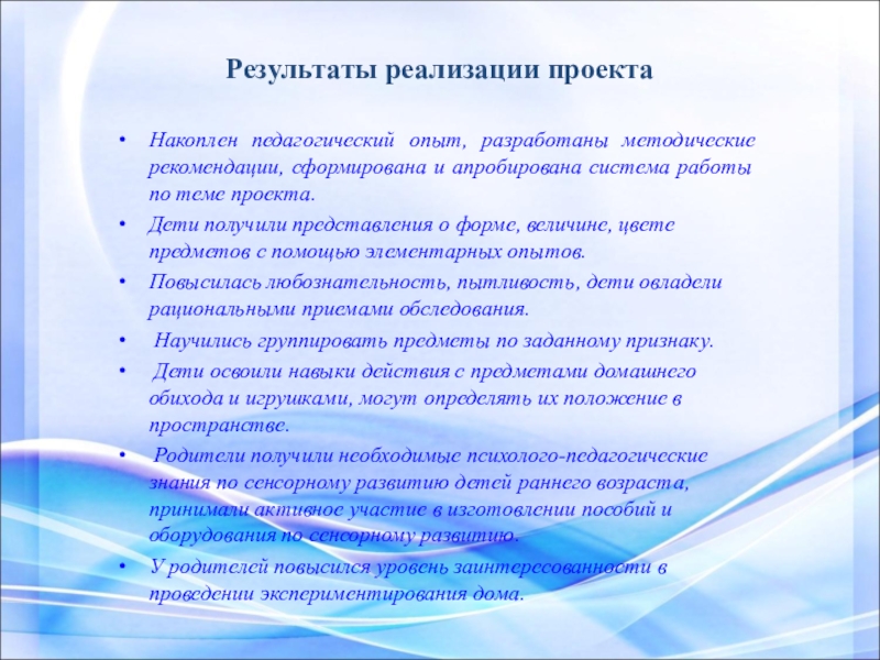 В ходе реализации проекта значительно повысился уровень сенсорного развития воспитанников, что