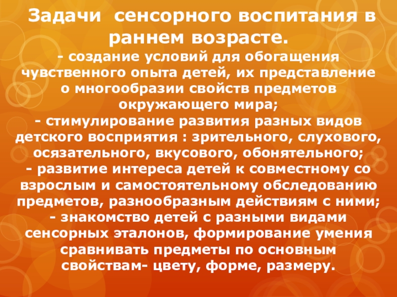 Слайд 5 Задачи сенсорного воспитания в раннем возрасте.