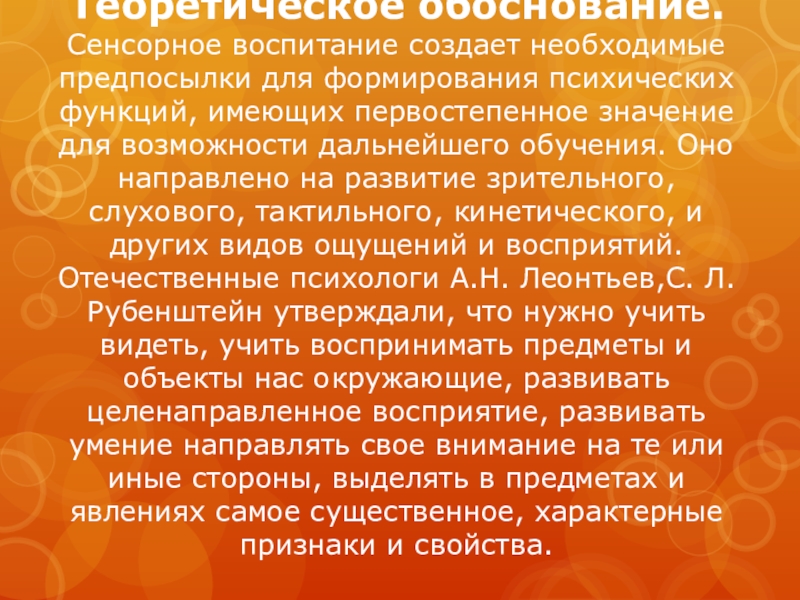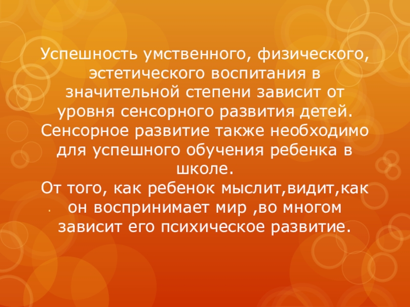Сенсорное воспитание создает необходимые предпосылки для формирования психических функций, имеющих