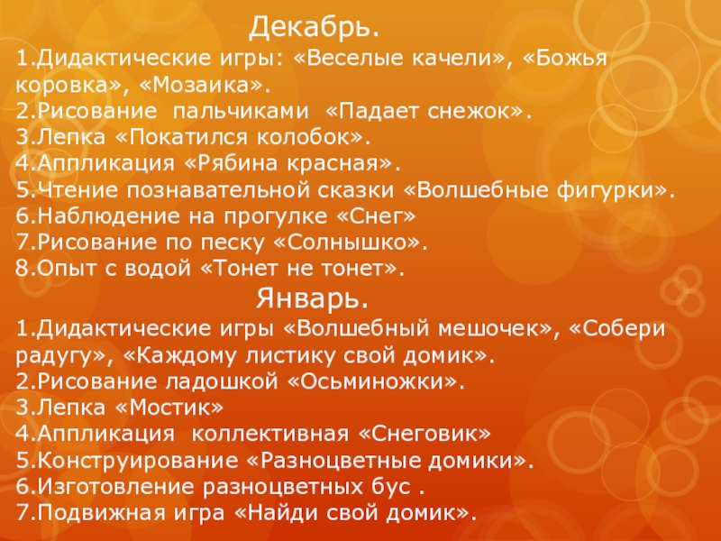 1.Дидактические игры: «Веселые качели», «Божья коровка», «Мозаика».