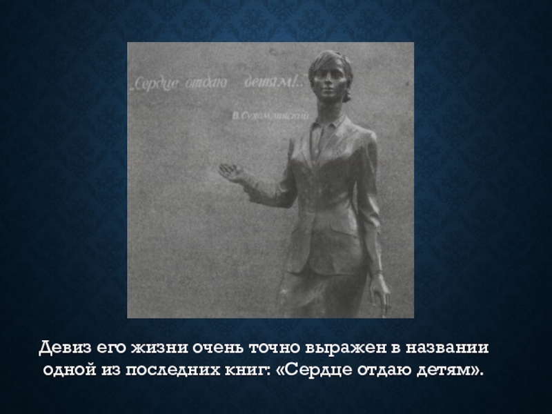 Слайд 21Итогом стала книга «Сердце отдаю детям» (Госпремия УССР, 1974 г.). Ее