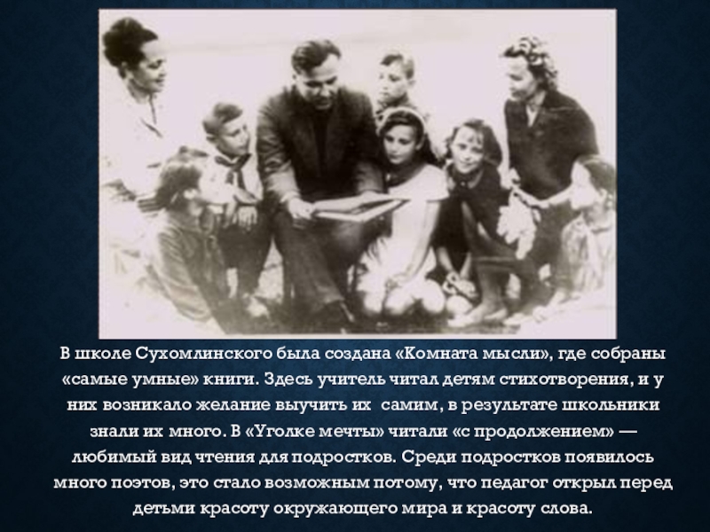 Слайд 5В школе Сухомлинского была создана «Комната мысли», где собраны «самые умные»