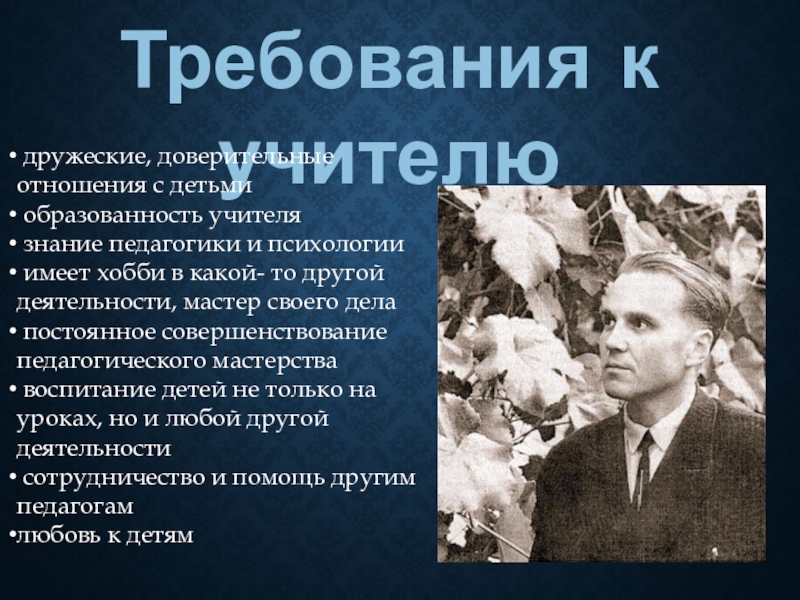 Слайд 11Идеал воспитания Сухомлинский видит в гармонической нравственно чистой личности. И поэтому