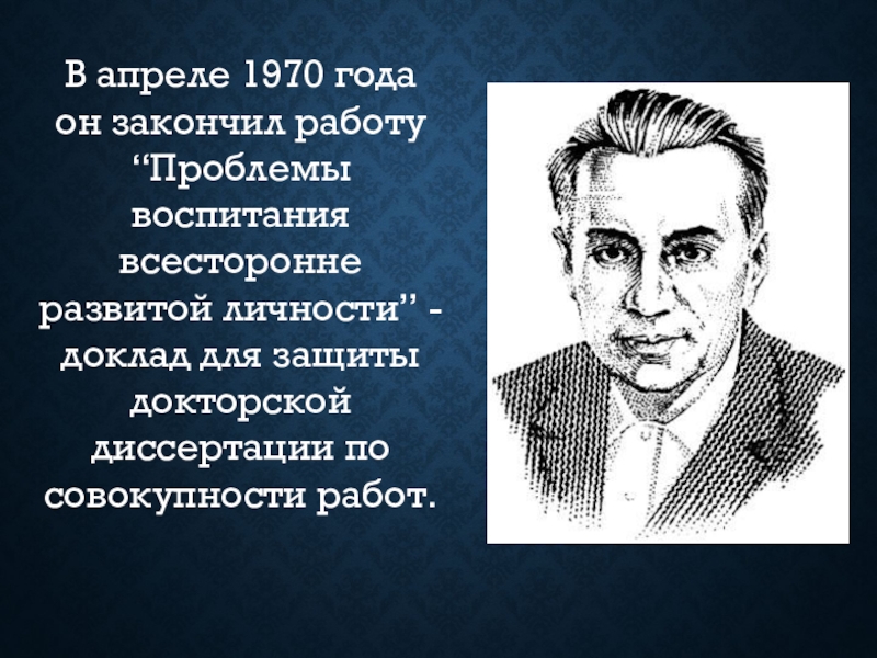 Слайд 22В апреле 1970 года он закончил работу “Проблемы воспитания всесторонне развитой