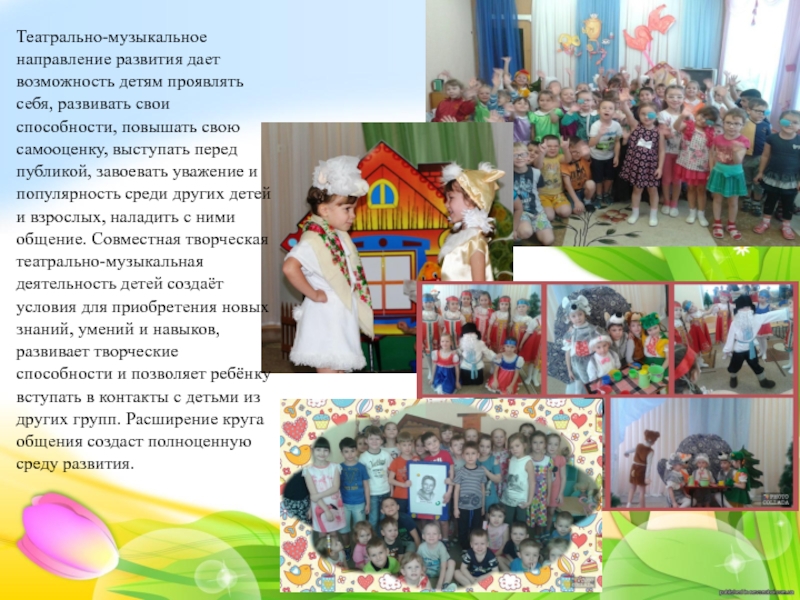 Слайд 7Театрально-музыкальное направление развития дает возможность детям проявлять себя, развивать свои способности,