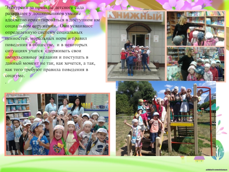 Слайд 12Экскурсии за пределы детского сада развивают у дошкольников умение адекватно ориентироваться