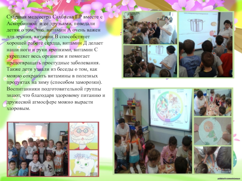 Слайд 14Старшая медсестра Сахбиева Г.Р вместе с Аскорбинкой и ее друзьями, поведали